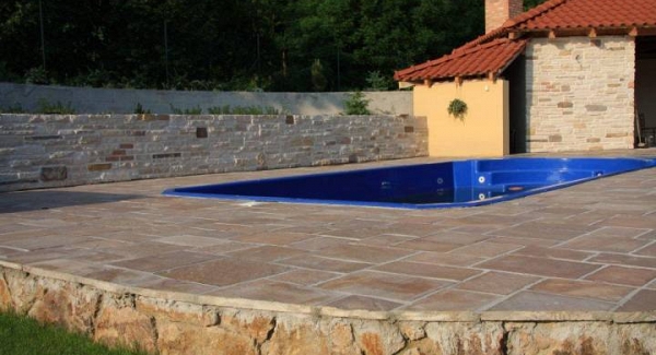 Particularly the Montana Portland paving, but also various other styles, prove popular around pools. Sandstone and brick décor possess many great advantages. The beauty and uniqueness of each paving piece provides swimming pools with an overwhelming sense of the spirit of summer comfort.